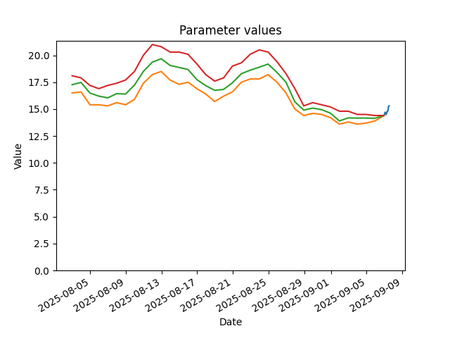 Temperatures are in degrees Celcius.